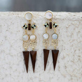 Athena Long Dangle Earrings—because basic just isn’t your style. These aren’t your average danglers; with rosewood, mother-of-pearl, and eye-catching enamel, they bring a whole vibe to your look. Wear them when you want that ‘wow, where’d you get those?’ reaction. Unique, well-loved, and unapologetically fabulous—just like you. You’ll forget you’re even wearing them—until the compliments roll in! Slip these on when you want to make a statement that’s as unforgettable as you are.