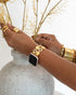 Transform your look with The Luxe Handset, a sophisticated pairing of the Moda Mandala Watch Band and a stunning gold ring stack. This set is all about elevating your hands with effortless glamour, blending sleek modern design with timeless elegance.