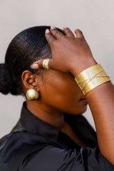Why do subtle when you can do unforgettable? A founder favorite, these big, bold, impossibly light hammered gold studs bring instant drama to everything you wear, from sleek satins to easy summer fits. They catch the light in all the right ways and turn even a simple nude look into a moment. Slip them on for cocktails, parties, or any time you feel like being the one everyone notices first.
