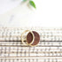 Bold, striking cocktail ring in the unusual combination of a dark wood disc intersecting with an oval gold ring.