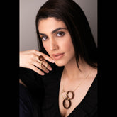 A geometric statement piece, this handcrafted two-circle cocktail ring is made with Indian rosewood and brass finished with a dull gold plating. It’s timeless beauty will take you from work to evening cocktails with ease and is sure to be a conversation starter, no matter the time or place.