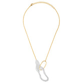 This refined piece from our Texture Tango collection combines sleek gold-plated brass with brushed silver-tone accents, creating a captivating contrast that adds depth to any ensemble. The organically shaped silver pendant intertwines with a minimalist gold oval, symbolizing harmony and connection. Inspired by organic forms, the design adds a touch of uniqueness while remaining effortlessly versatile.