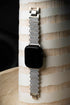 Immerse yourself in the allure of Moonlit Ash – a classy twist on our Eternity Apple Watch® bands. Inspired by vintage baguette rings, this design merges timeless elegance with modern chic. The continuous row of enamel-filled lines, paired with the pearly gray, creates an accessory that effortlessly complements any style, making it a versatile and striking addition to your collection.
